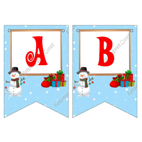 Kardan Adam Temalı Mavi - Banner - Flama - İkili