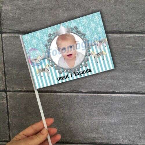 Vintage Desenli Gümüş Taçlı Parti Bayrağı