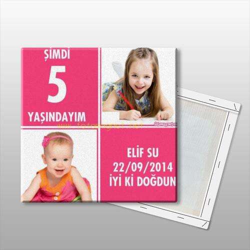 Pembe - Kare - Doğum Günü - Kanvas Tablo