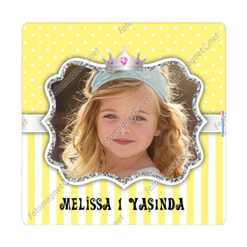 Sarı Gümüş Prenses Taçlı - Kare - Magnet