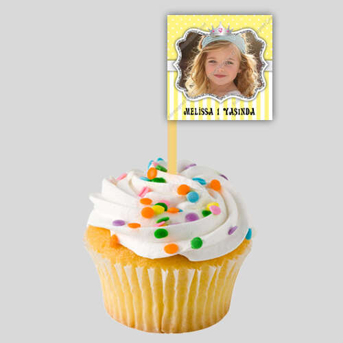 Sarı Gümüş Prenses Taçlı - Karton Bardak - Sargı Etiketi