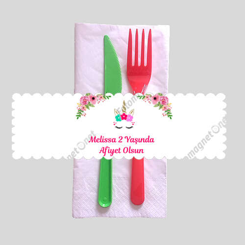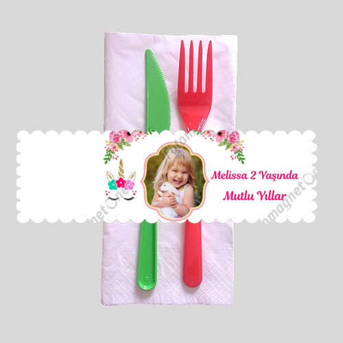 Unicorn Temalı Çiçekli - Peçete Sargısı