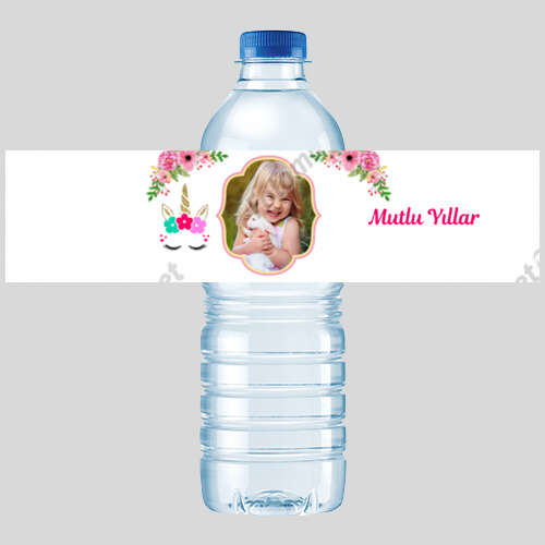Unicorn Temalı Çiçekli - Fotoğraflı - Şişe Etiketi