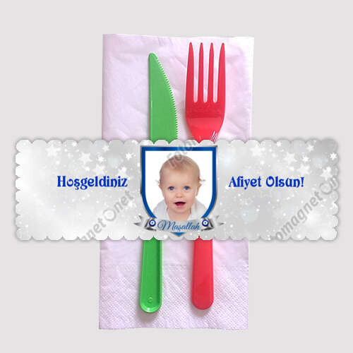 Sünnet Temalı Gümüş Renk - Peçete Sargısı