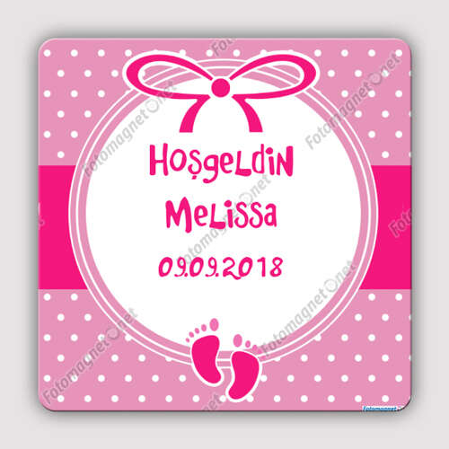 Hoş Geldin Bebek - Pembe - Kare - Hatıra - Magnet
