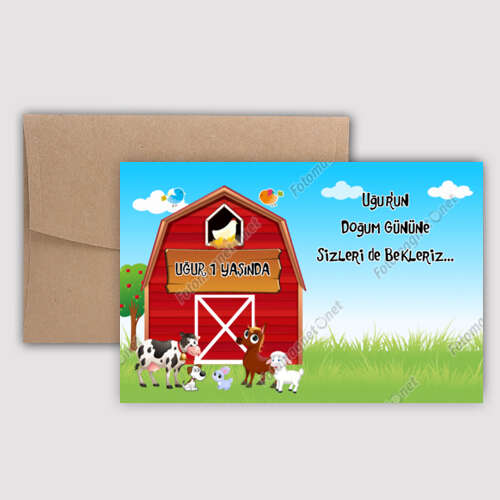Çiftlik Ve Hayvanlar Temalı - Fotoğrafsız - Doğum Günü Davetiyesi