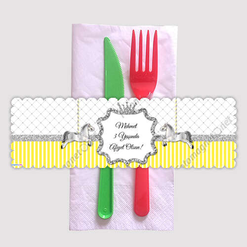 Atlı Karınca Temalı Gümüş Simli - Fotoğrafsız - Peçete Sargısı