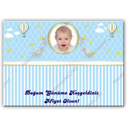 Fil Ve Balon Temalı Mavi - Fotoğraflı - Kürdan Bayrak