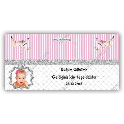 Atlı Karınca Temalı Gümüş Simli Pembe - Sargılı Çikolata Etiketi