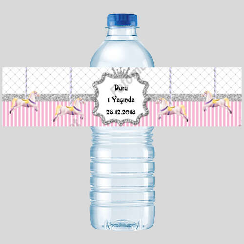 Atlı Karınca Temalı Gümüş Simli Pembe Şişe Etiket