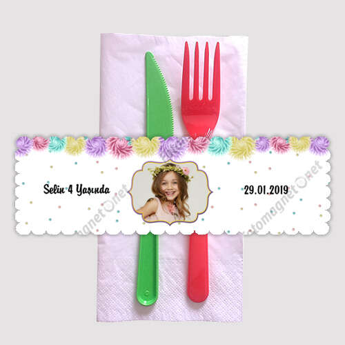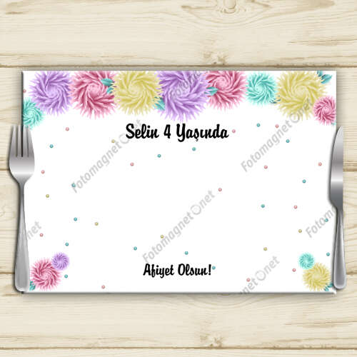 Renkli Çiçekler Temalı - Fotoğrafsız - Peçete Sargısı