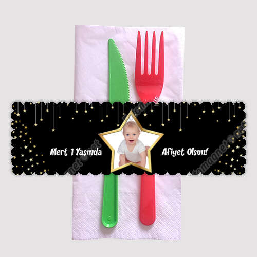 Yıldız Çerçeveli Siyah Dore - Peçete Sargısı