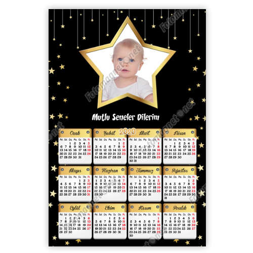 Yıldız Çerçeveli Siyah Dore 2024 Takvim Magnet