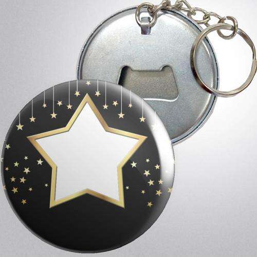 Yıldız Çerçeveli Siyah Dore - Fotoğrafsız - Metal - Açacak - Anahtarlık