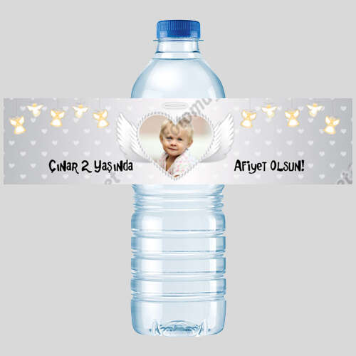 Melek Temalı Gümüş Gri - Şişe Etiketi
